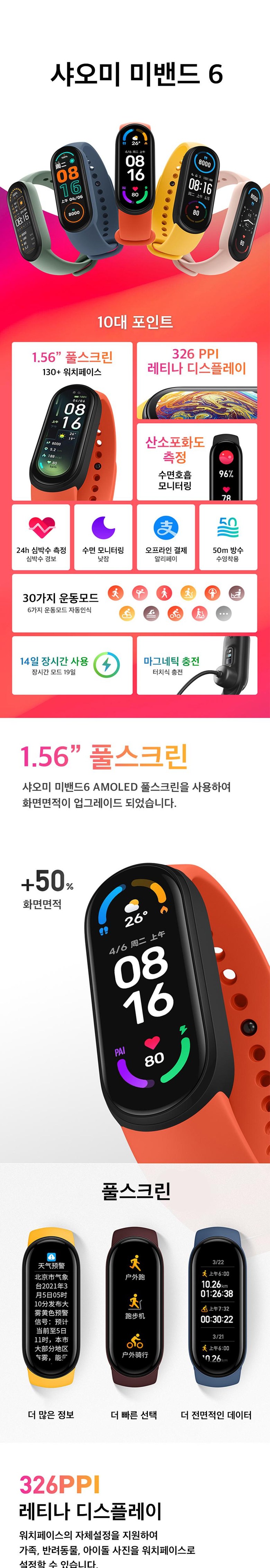 샤오미 미밴드6 2021년 최신상 한글화 지원/ 한글 패치 가능, NFC버전